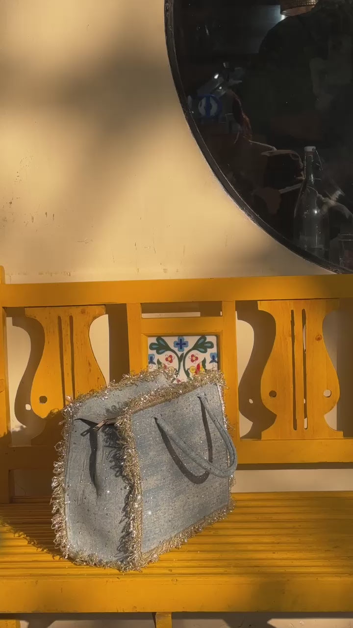 Denim done dazzlingly well. The Brittany Tote combines chambray sparkle and metallic gota lace trim for effortless versatility. Whether you’re styling it with head-to-toe denim or crisp whites, this glam-meets-casual handbag is your go-to from spring break getaways to barbeques at Fourth of July.